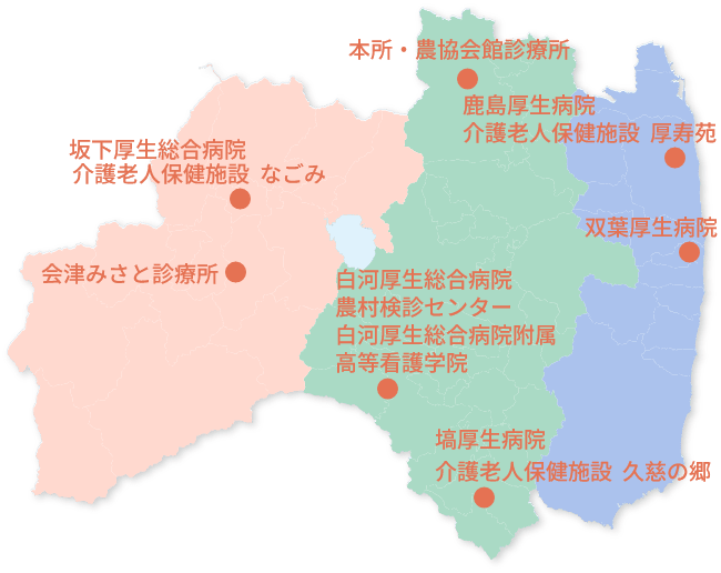 県内6カ所の病院と診療所・農村健診センターを設置し、組合員をはじめ地域の方々が安心して医療をうけられるよう、最新の医療施設や医療機器を整備し、診療に努めています。